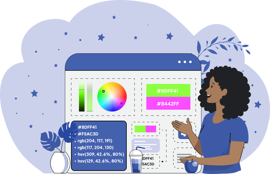 World's simplest online complementary color palette maker. Just select the base color from the color wheel (or enter the color code in the tool options), and the tool will instantly find its opposite color. You can also fine-tune the base color's lightness and opacity parameters, and convert the final color palette to various color formats (such as HEX, RGB, HSL, LAB, LUV, CMYK, and many more). Free, quick, and very powerful. Press a button – get a two-color palette of complementary colors. Created with love by team Browserling.