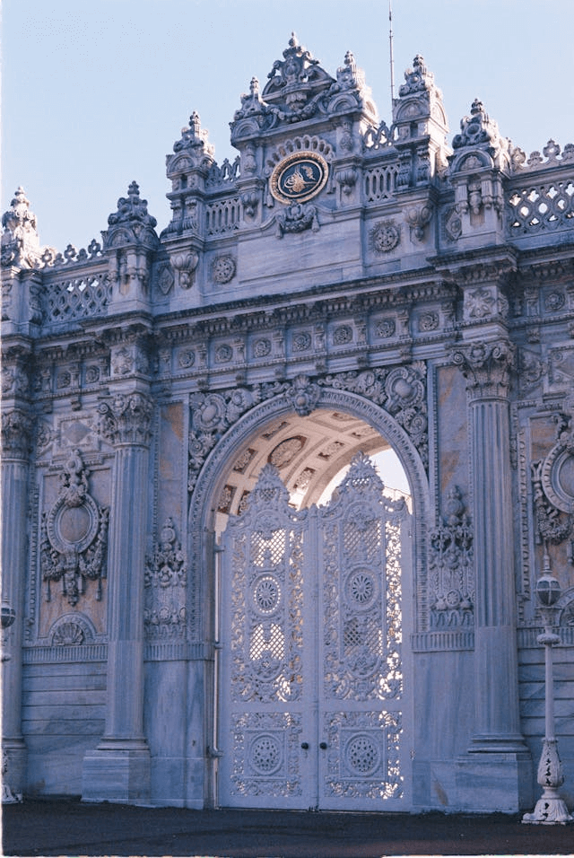 This example creates a two‑color stencil of the Dolmabahce Palace gate by dividing pixels into dark and light groups. We ignore hue and saturation completely and focus only on lightness. Pixels with lightness between 0% and 45% are classified as dark and displayed in solid black, while everything above 45% is considered light and made transparent. (Source: Pexels.)