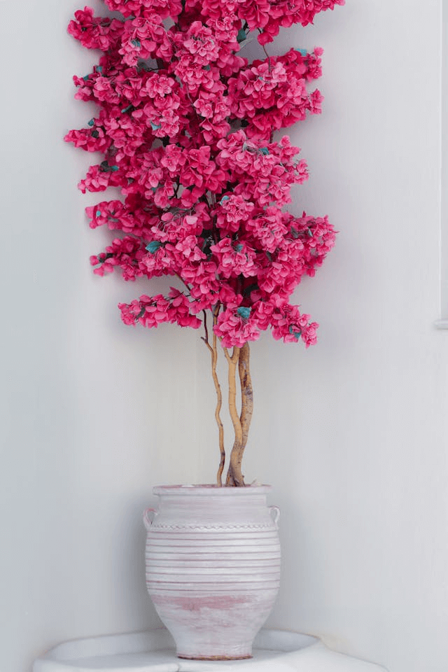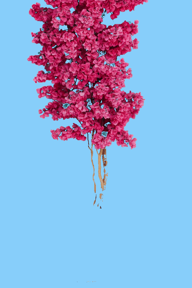 This example generates a mask based purely on color saturation. We allow the full hue range (0°–360°) and the full lightness range (0%–100%) so that hue and brightness do not affect the selection. We then define saturation from 25% to 100%, meaning only sufficiently vivid pixels are included. The mask keeps matching pixels unchanged (the bright pink bougainvillea flowers) while filling all low-saturation areas with a solid lightskyblue color. (Source: Pexels.)