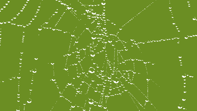 In this example, we investigate the lightness component by isolating sparkling water droplets on a spider web. We ignore hue and saturation variations, focusing solely on a lightness range of 60% to 100% to capture the bright reflections. The mask shows these highlights in white and covers all darker mid-tones and shadows with a solid olive-drab color. (Source: Pexels.)