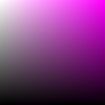In this example, we generate a four-corner palette that demonstrates the lightness and darkness of the magenta color. To do this, we set the top left corner to white, the two bottom corners to black, and the top right corner to the magenta color. This palette is a standard palette in many color pickers, as it makes it easy to find darker or lighter shades of the magenta (or some other color) color.