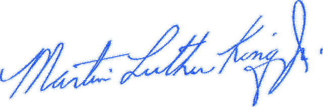 In this example, we upload a thin, blurry, and noisy signature of Martin Luther King Jr. To enhance it, we use several options of this tool. First, we replace the poorly visible blue color of the signature with a solid black color. Then, we increase the thickness of the signature by 1 pixel. Finally, we clean up the signature by making all noisy semi-transparent pixels with an alpha channel value less than 150 completely transparent, thus effectively removing all noise and artifacts from the signature. (Source: Wikipedia.)