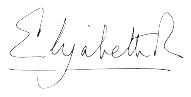 In this example, we transform a low-quality photograph of Queen Elizabeth II's signature into a high-quality electronic signature. To achieve this, we increase the signature's width by 3 pixels, excluding internal contours to maintain authenticity. We also introduce a new signature color – the dark sienna color (#673923). The outcome is a robust, clear, and contemporary electronic signature of Queen Elizabeth II. (Source: Wikipedia.)