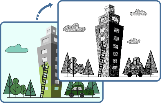This tool converts any PNG picture into just two colors – black and white. Additionally, you can enable dithering to give the black and white picture depth, and also break the logic rules by changing black to any other color, such as red.