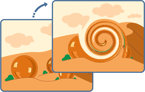 This tool creates a swirl of pixels anywhere on a PNG image. The swirl is like a tornado vortex or a dust devil and all pixels in the PNG are rotated by a certain angle.