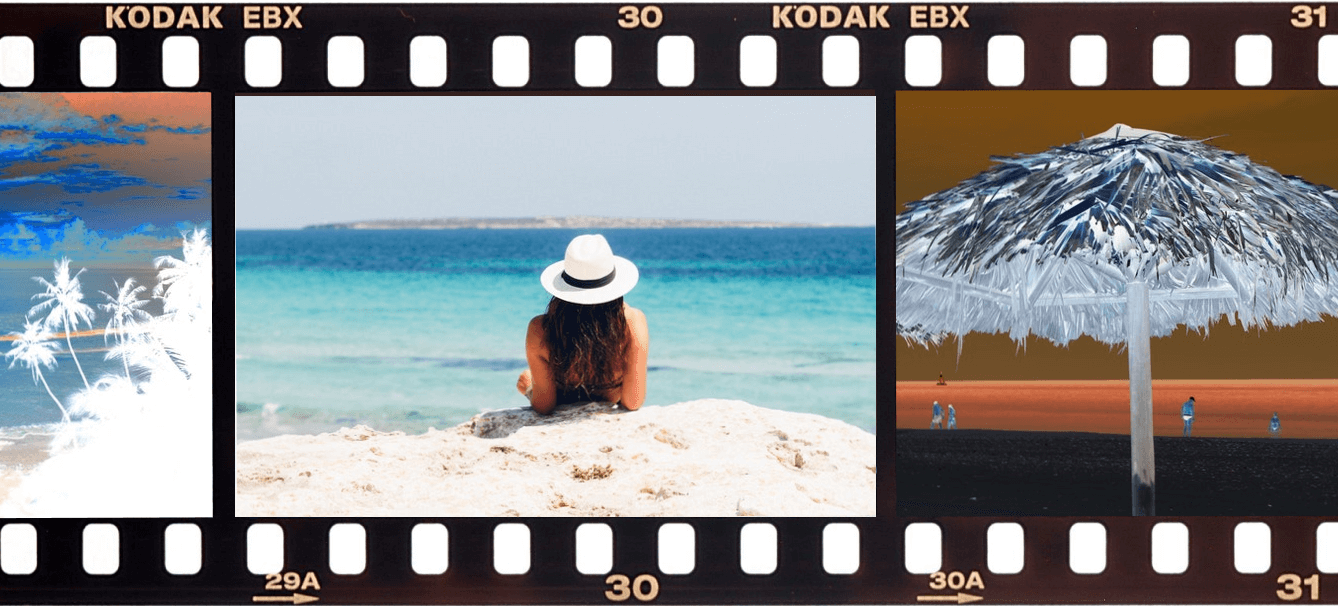 We found an old photo negative and we wanted to see what's on it. We loaded it in our utility and selected the central frame. The program inverted all the colors in the negative, and now we can see that it's a vacation photo, and it's in real colors. (Source: Pexels.)