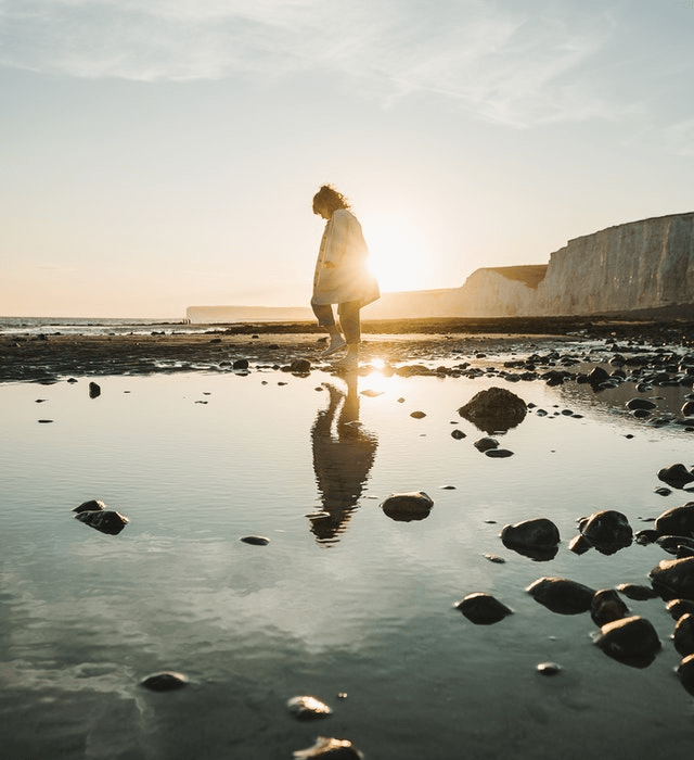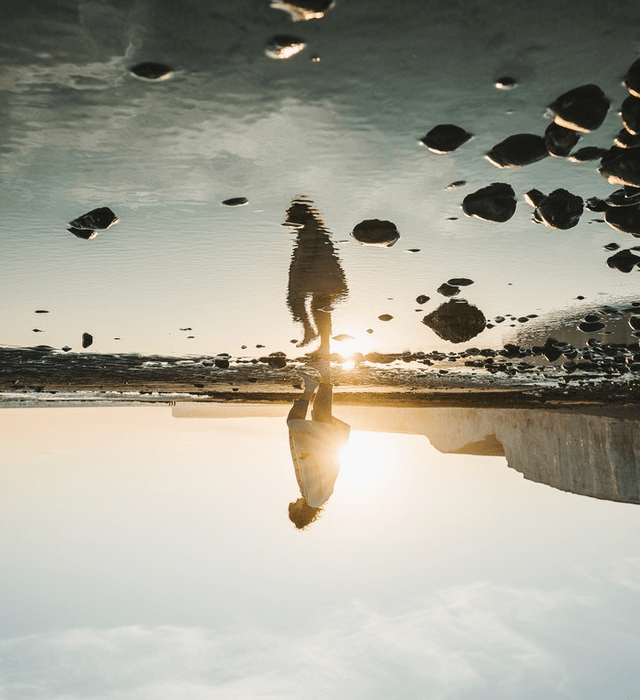 In this example, a person in the PNG photo is standing near a puddle of water and we can see her reflection in the water. Once we apply the vertical mirroring effect on the photo, it rotates along the x-axis. The puddle is now at the top of the photo and the person now appears at the bottom of the image. (Source: Pexels.)
