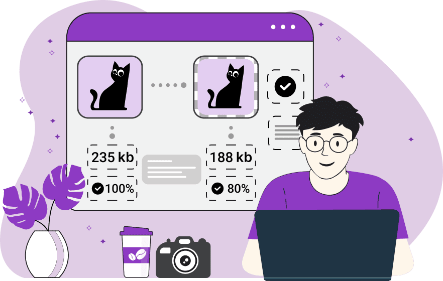 This browser-based program allows you to optimize your PNG files so that they take up less computer memory. You can optimize the PNG in a lossy or lossless way as well as resize the PNG to a smaller size (while maintaining the aspect ratio). Additionally, the optimization removes all unneeded image metadata (such as text comments, photo camera information, GPS information, information about the last used PNG editor, etc). When a PNG is optimized, its size is reduced. A smaller PNG loads quicker, it's displayed on the screen faster, and also if it's used on a website as a logo or an illustration, it increases the website's performance and the loading speed, and requires less storage space on your server. By default, this utility is tuned for the best balance between the image quality and file size. It does not change the dimensions of the PNG image (the resize option is set to 100%) and it makes minimal changes to the quality (it's set to 75%). At the quality level of 75%, the optimized PNG looks almost the same as the input PNG but it has a new internal data stream that's better compressed. These settings can reduce a photo size from 10% to 60%. If you want to achieve an even higher level of optimization, you can further reduce the PNG quality by decreasing the percentage value of the quality option. You can also resize the PNG to a smaller size. Often, PNGs are huge in size and you don't really need that big image. The resizing is done while preserving the aspect ratio. The new PNG size is expressed as a percentage, where 100% is the current size, and a lower percentage means a smaller size. For example, if the unoptimized PNG is 800×600 pixels, then 80% size will make it 640×480 pixels. When resizing the PNG, you can make pixels smoother or rougher and see a live result in the output preview box. You can download the optimized PNG in the output preview box and see the old and new file sizes in the last block of options. Coming soon, you'll also be able to optimize the color palette, merge pixels of similar color tones, as well as apply a little bit of blur effect that will make pixels less sharp and therefore make the PNG smaller. Png-abulous!