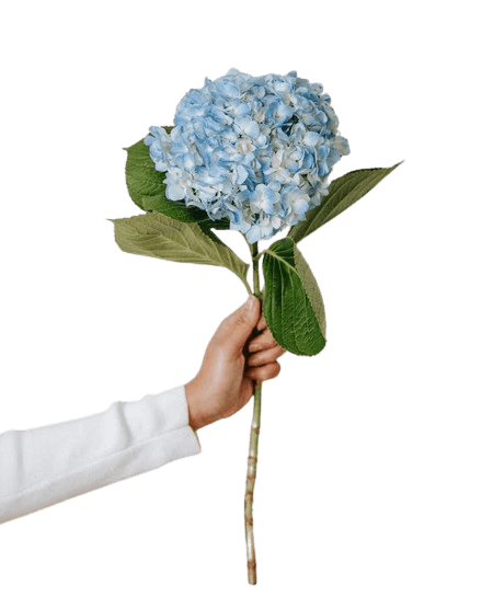 In this example, we delete the alpha channel around a hortensia flower in a PNG image. The transparent regions containing the alpha channel get replaced with a linear gradient that transitions smoothly from the bottom to the top and consists of two colors: powder blue and azure. (Source: Pexels.)
