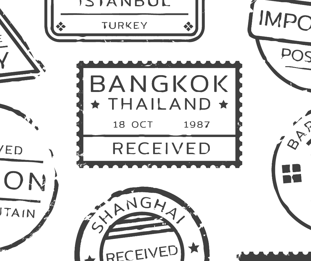 In this example, we isolate the Bangkok, Thailand postal service seal from a scanned sheet of seals. To remove the unwanted parts of other seals and get a clean, usable Bangkok seal, we remove the padding on the left (242 pixels), right (218 pixels), top (189 pixels), and bottom (293 pixels). We use the rectangular cropping shape for this operation, which works great for the seal we're working with. (Source: Freepik.)