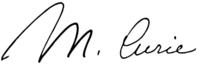 In this example, we increase the size of Marie Curie's signature. We use the proportional resizing method, where the ratio of the signature's width and height always remains constant. We enter the new width equal to 640 pixels and the program automatically calculates the new height, which is now 208 pixels. (Source: Wikipedia.)