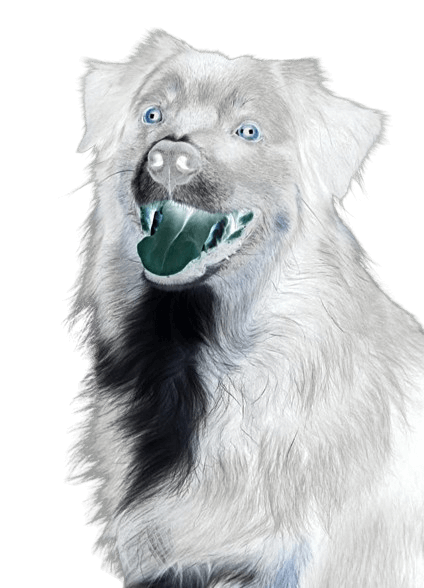 In this example, we apply the color reversal effect to the entire PNG sticker of a long-haired black-and-white doggo. To do this, we simply clear the coordinates and dimensions settings of the reversal area. As a result, the colors in the entire PNG get reversed, and we get a white dog with a black spot on its neck. (Source: Pexels.)