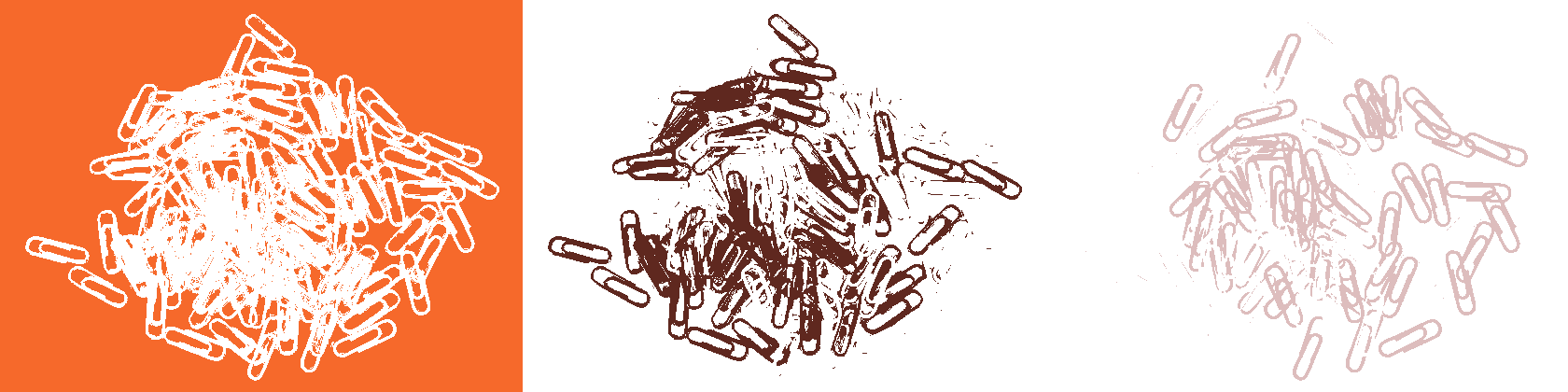 In this example, we load a PNG image of a pile of paper clips and separate it into individual color layers. We use the "Extract Quantized Colors" option to divide the image into three colors. This option automatically identifies the three most used colors in the PNG, and the tool then creates three separate images, each displaying one color layer. (Source: Pexels.)