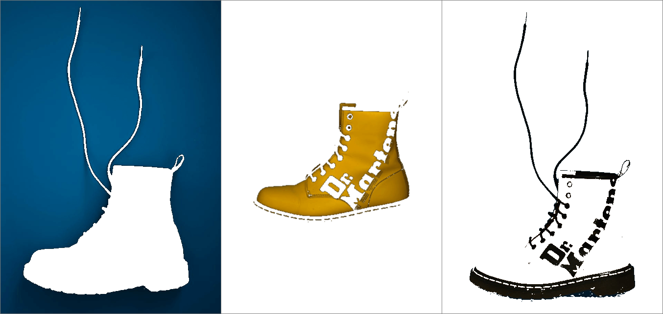 In this example, we transform the well-known Snapchat logo into separate layers of its signature colors. The logo has three brand colors: yellow (#fffc00), black, and white. We input these colors into the options (with a default threshold of 10%) and extract them into individual layers. We apply the cropping option to remove empty space around the color elements and draw a bold 3-pixel black border around each layer of the logo. (Source: Wikipedia.)