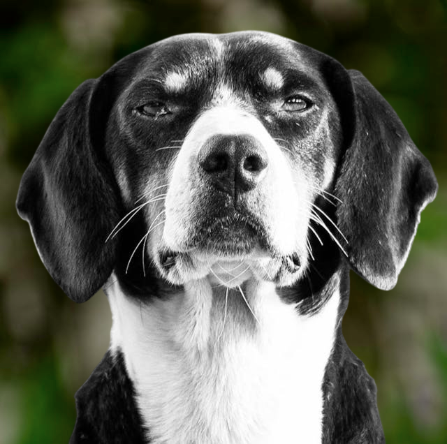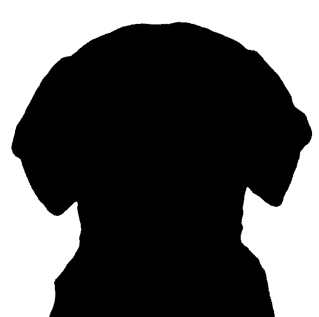In this example, we analyze a dog portrait to separate pure grayscale elements from saturated colors. By generating a high-contrast mask with a strict threshold of 0, we reveal that only the dog's fur consists of true grayscale pixels (R = G = B). The background, though muted in tone, contains subtle color information that exceeds the zero-threshold limit. By mapping grayscale pixels to black and colored pixels to white, we get a perfect black silhouette of the dog on a white background. (Source: Pexels.)