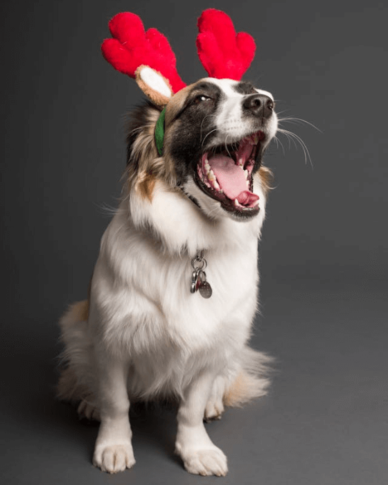 In this example, we upload a funny PNG image of a dog with a reindeer headband and split it into large pixel blocks, creating a pixelation effect. To do it, we set the block size to 20 pixels, creating a tiled PNG with a tile size of 20×20 pixels. To keep blocks in place, we select the "Do Not Sort" mode. (Source: Pexels.)