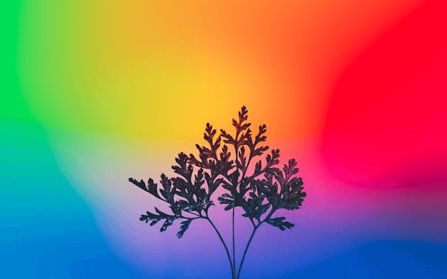 In this example, we upload a PNG silhouette of a tree on a multi-color gradient background and sort its pixels in rainbow order. We combine the pixels into blocks of size 4×4 pixels and sort the squares from top to bottom in the order red, orange, yellow, green, blue, indigo, and violet. Additionally, we enable grayscale filtering – all grayscale pixels (black, white, and gray) are pushed to the end based on a 30% lightness threshold. (Source: Pexels.)