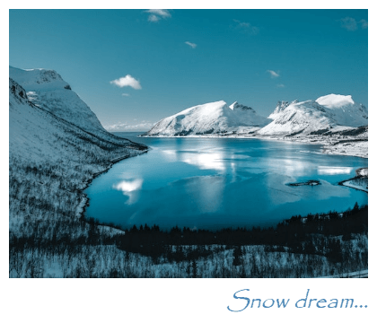 We wanted to decorate our room with beautiful polaroids from our trip. As all the photos were taken with a modern iPhone camera, we used our program to create old-school polaroids for printing. We set the width of the polaroid to 400 pixels and the height to 300 pixels to create a landscape-oriented polaroid. We also added a white 10-pixel border to the polaroid and wrote a romantic caption "Snow dream..." in the beautiful steel-blue Papyrus font. (Source: Pexels.)