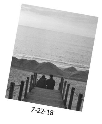In this example, we create a polaroid of good memories. We add a white frame to the image and turn it into gray tones for a nostalgic atmosphere. We sign the PNG with the "7-22-18" written in Tahoma font. Additionally, we apply a 10-degree clockwise tilt, giving the polaroid a scrapbook-like feel and making it look as if it was pinned to a corkboard. (Source: Pexels.)