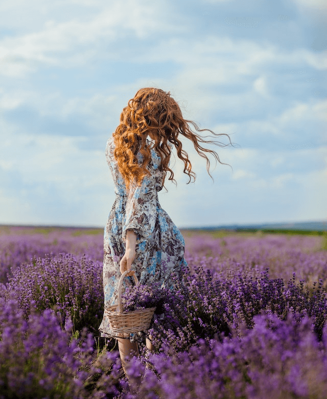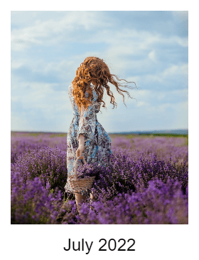 In this example, we load a PNG image of a girl in a lavender field and turn it into a polaroid. We add a white 15-px border on the sides and a 50-px spacer at the bottom for the text. We add the caption "July 2022" to remind us the date of this unforgettable moment. (Source: Pexels.)